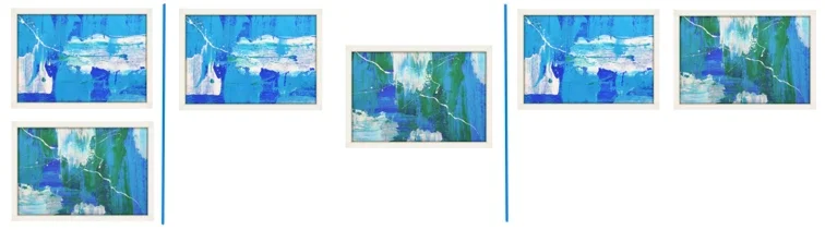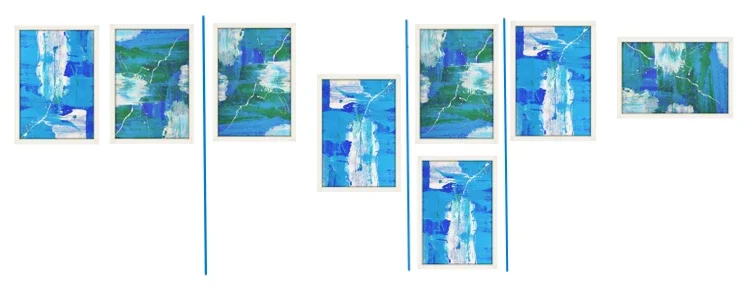 Sie sind unsigniert und können einzeln oder miteinander in verschiedenen Positionen beliebig in vielen Variationen, Quer oder Hochkant, versetzt, nebeneinander oder untereinander aufgehängt werden.