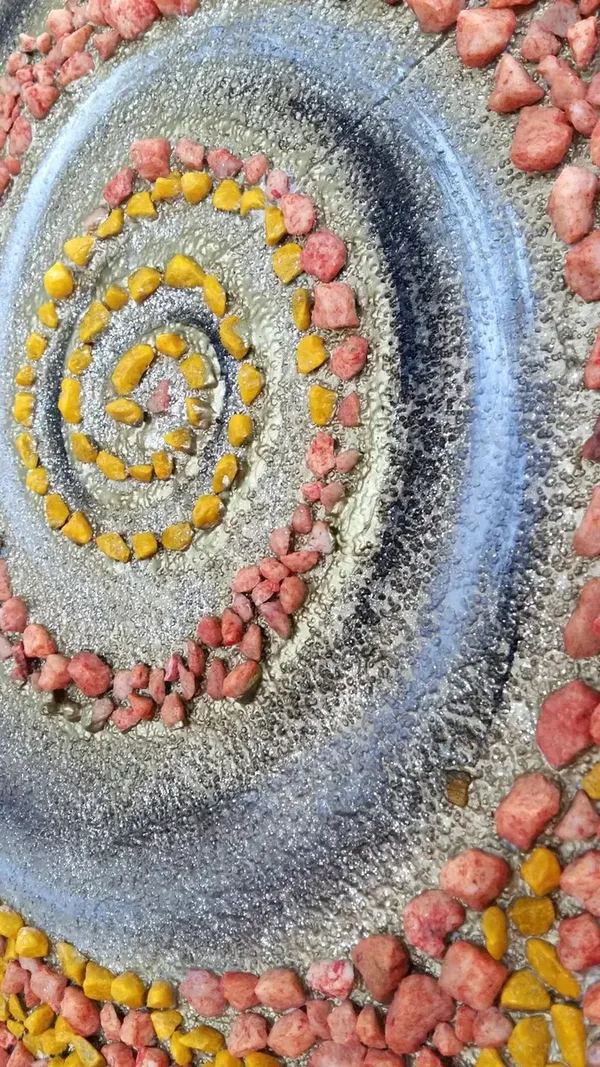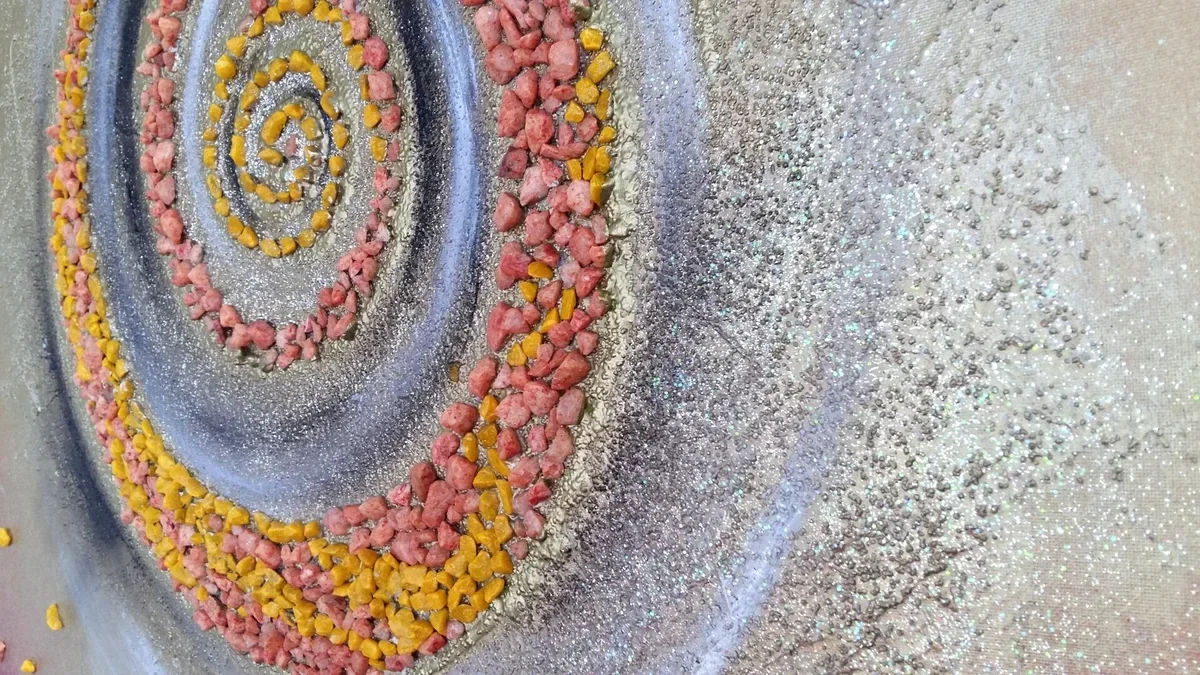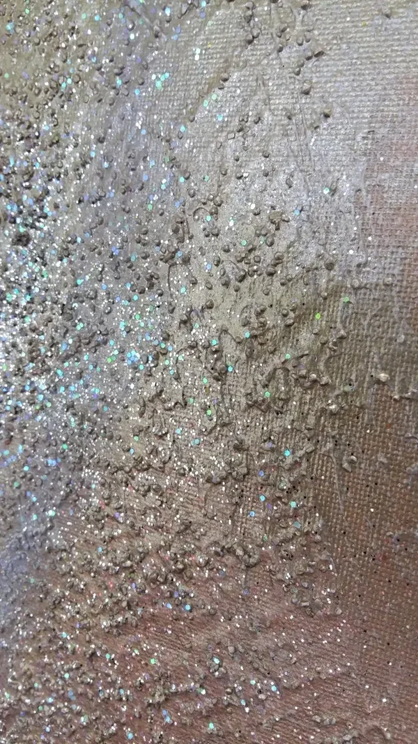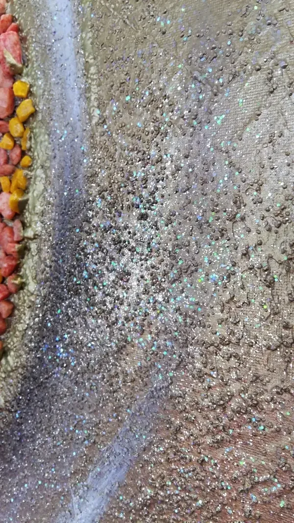 Acryl auf Leinwand mit Steinen, Gold und Strukturen.