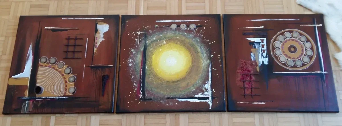 Acryl auf Leinwand mit Spiegelmagneten, Eisen und Strukturen.